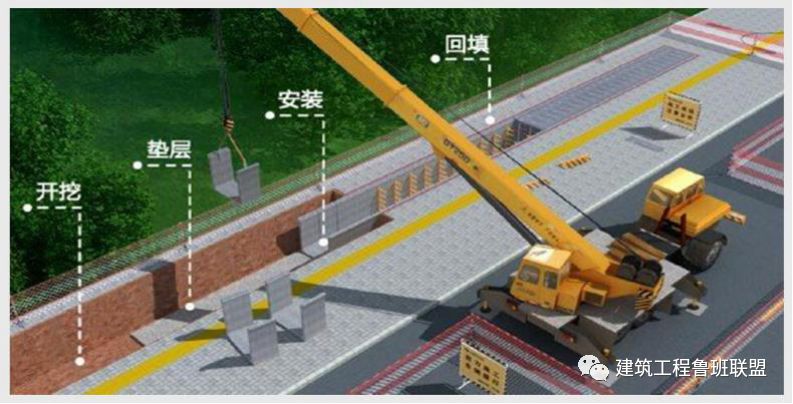 施工放線→溝槽開挖→夯實整平基礎(chǔ)→墊層澆筑→吊裝電纜溝槽→排水找坡及密封→回填壓實土方→路面修復(fù)及蓋板安裝