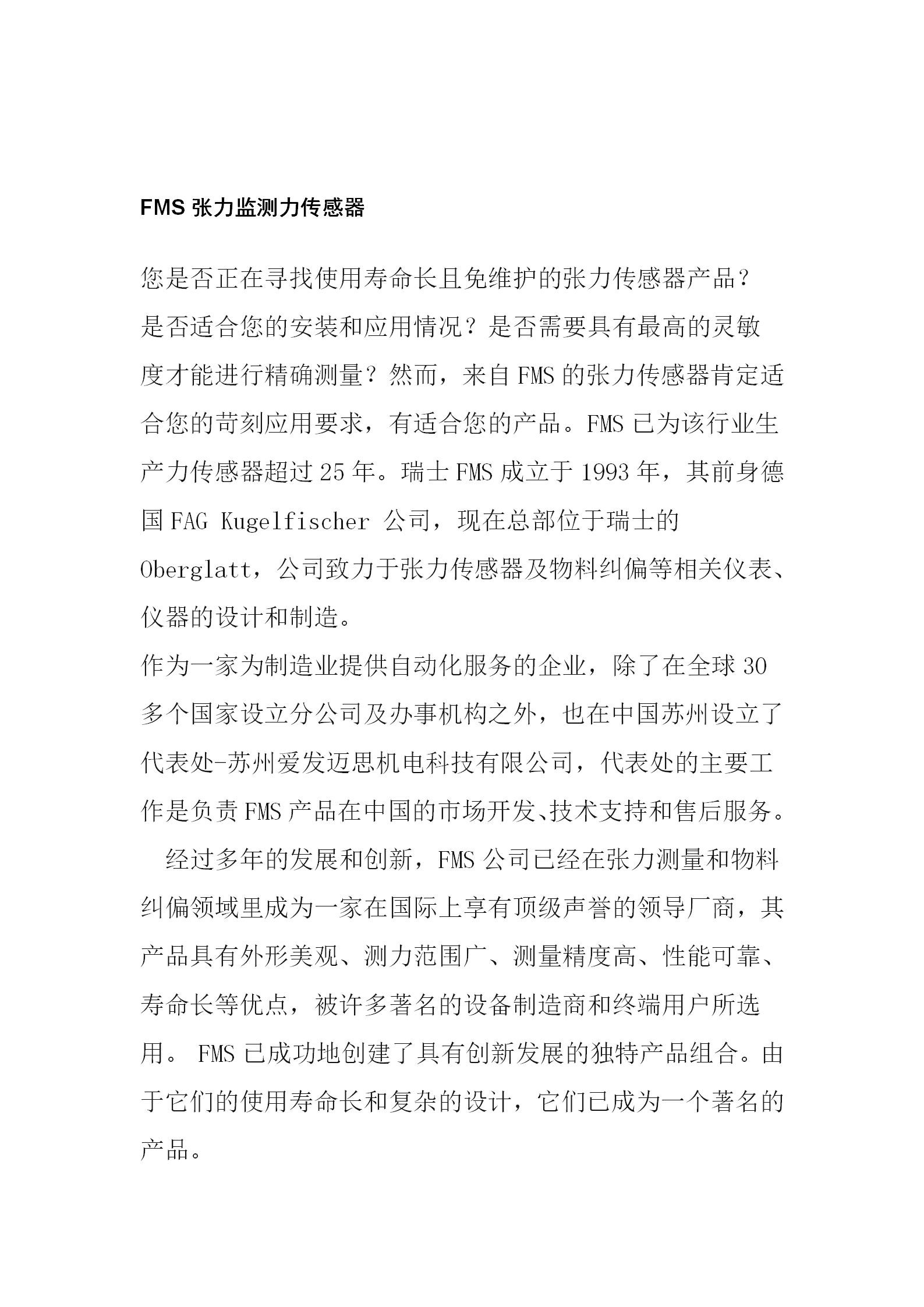 [設(shè)備廠家] 瑞士FMS—讓“張力傳感器”發(fā)揮其最大的作用!