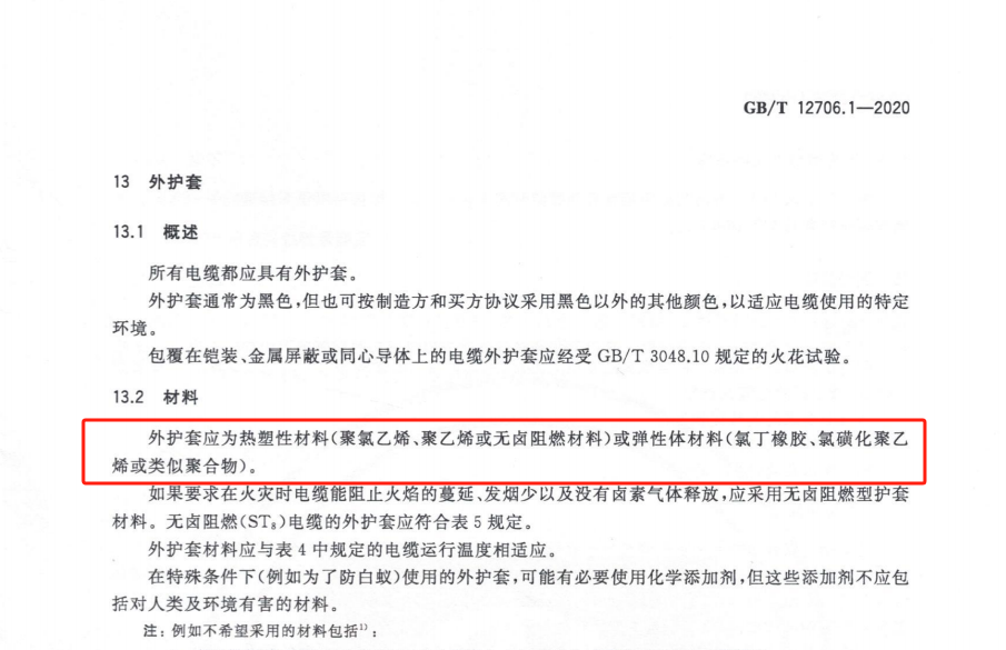 zhangyuhang564851702:看你前面是否有阻燃代號 在12706中如果沒體現(xiàn)低煙無鹵,就要用聚乙烯類15707217659:在哪里明確標(biāo)注了,我看了一下沒有明確表明YJY這類的護(hù)套一定要用聚乙烯吧?zhangyuhang564851702:標(biāo)準(zhǔn)里面沒寫,當(dāng)時貫標(biāo)時候檢測機(jī)構(gòu)說的