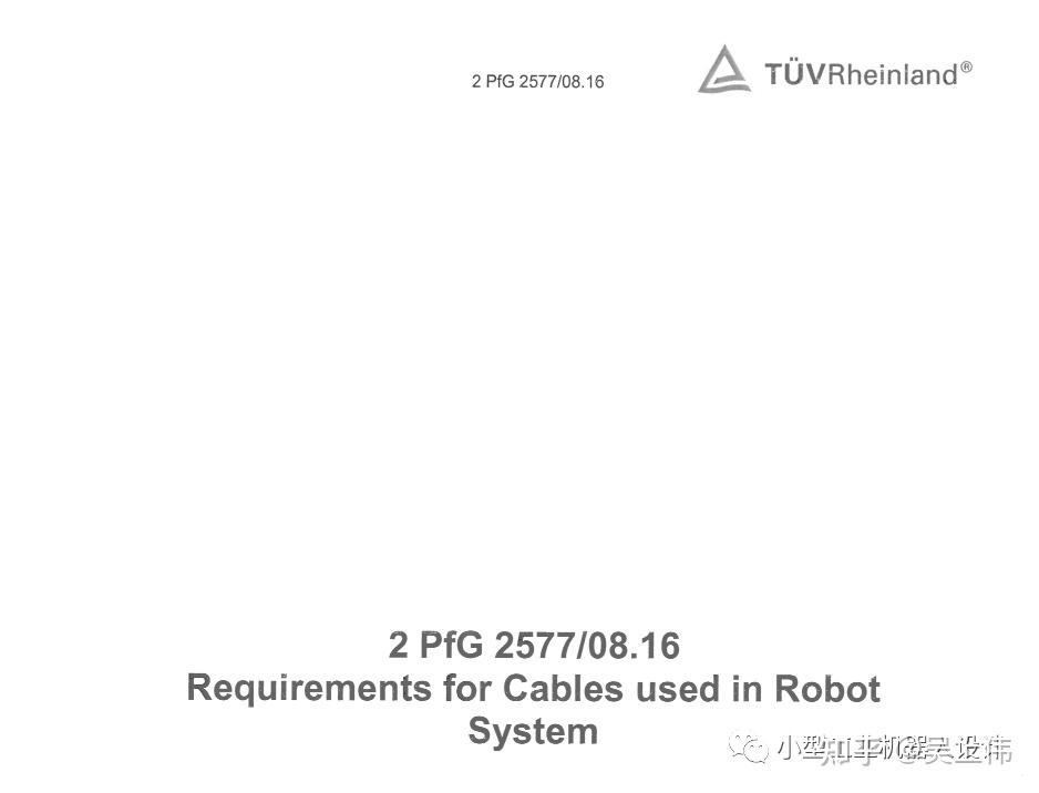 1、TUV萊茵制定的《PfG 2577/07.19 Requirements for Cables used in Robot System》,這是19年的2.0版本,更早的一版是2016年的版本。