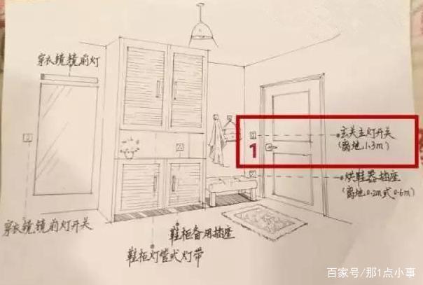 這其實也是看自己的需求,要是想在玄關(guān)處裝個面鏡子,再裝個鏡前燈會更亮點,但是間諜在鏡子上方的位置預(yù)留好電源插座,還要考慮好鏡前燈的開關(guān)位置。