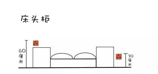 床頭兩邊的插座安裝在床頭柜上方距地面60-75cm處,或者裝在床頭柜左右側(cè)距地面30cm的位置。