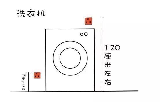 洗衣機插座的安裝有兩個方案:一是安轉(zhuǎn)載洗衣機上方距地面120cm的位置,二是暗轉(zhuǎn)阿貴洗衣機左右兩側(cè)距地面35cm的位置。