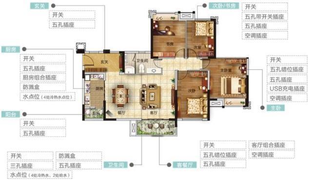 少部分家庭裝修時單獨設計了一個空間作為書房,開關插座點位主要參考下圖。