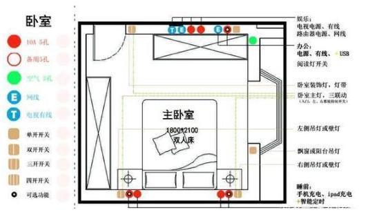 除了考慮到平時的照明之外,還要考慮到睡眠時對于開關操作的便捷想,包括一些其他電器例如手機、筆記本、臺燈等的使用需求。