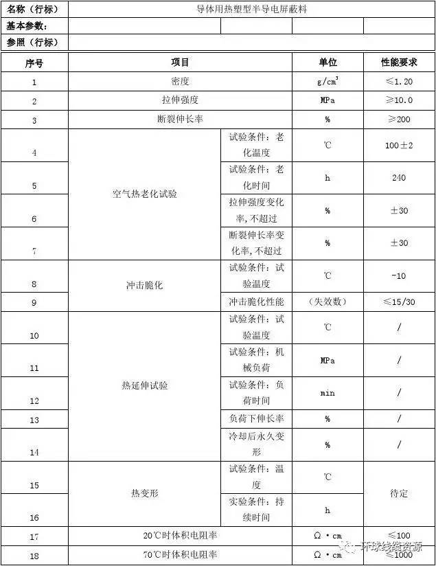 1、導(dǎo)體用熱塑型半導(dǎo)電屏蔽料行業(yè)技術(shù)參數(shù)