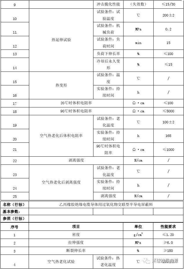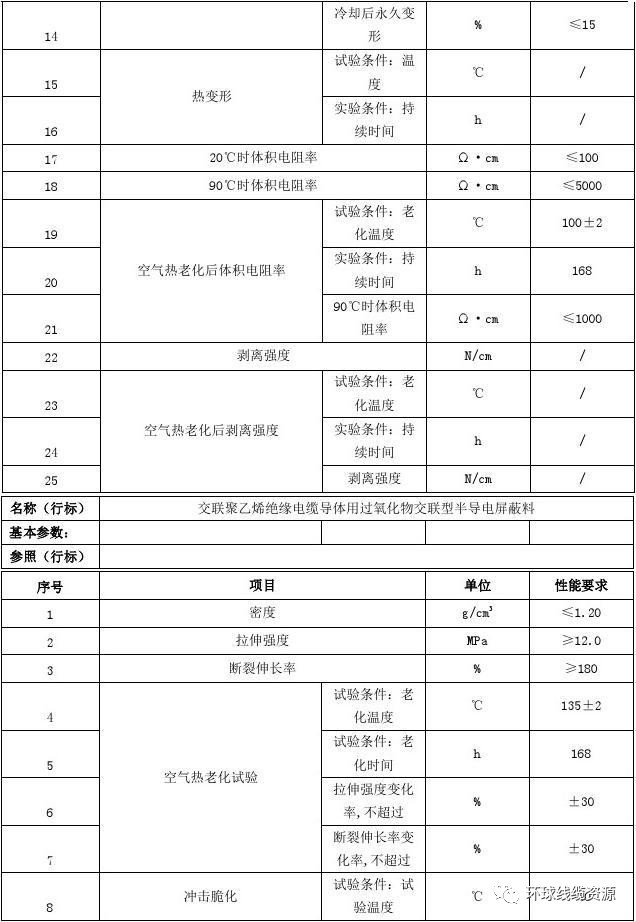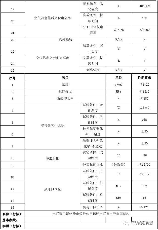 2、交聯(lián)聚乙烯絕緣電纜導(dǎo)體用輻照交聯(lián)型半導(dǎo)電屏蔽料行業(yè)技術(shù)參數(shù) 機(jī)械物理性能與電氣性能: