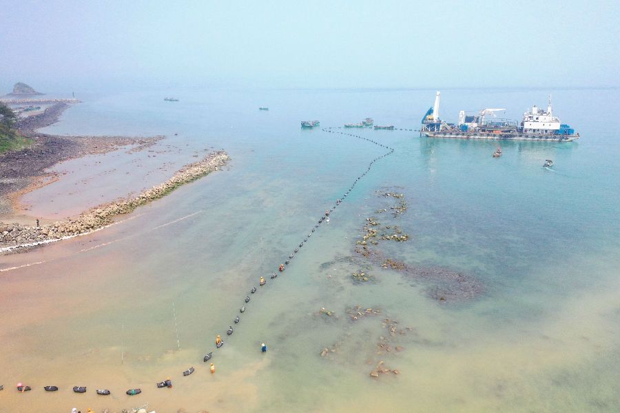 海南聯(lián)網(wǎng)二回工程第四根海底電纜在海南側(cè)敷設現(xiàn)場 本文圖自中國南方電網(wǎng)有限責任公司