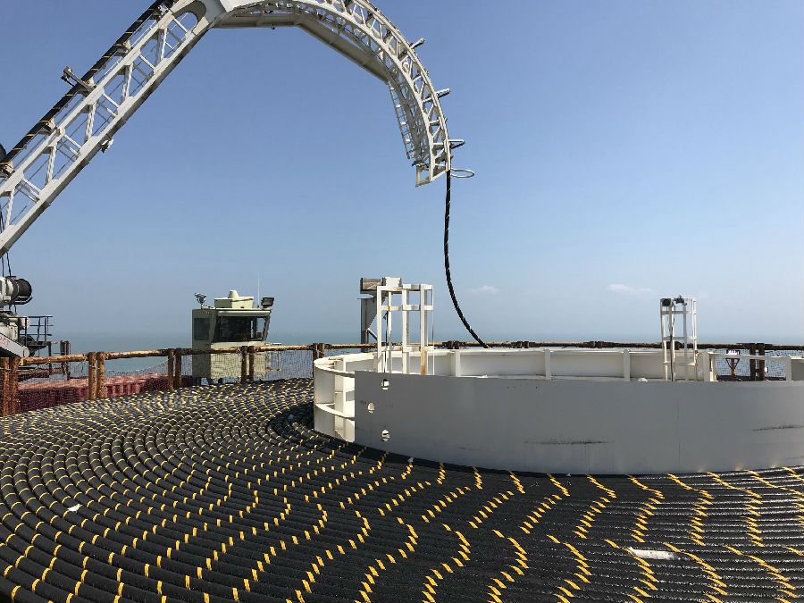 海底電纜敷設作業(yè)船現(xiàn)場導纜