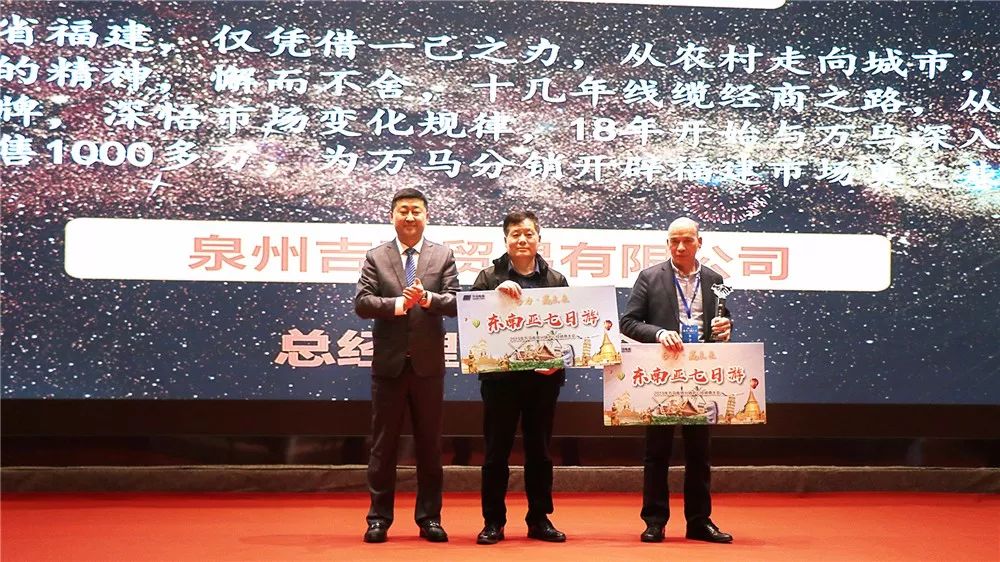 視!會議掠影,視聽盛宴 年度優(yōu)秀新人獎 年度品類推廣獎 年度業(yè)績增幅獎 年度突出貢獻獎 迎接經(jīng)銷商入場 一馬當先,萬馬奔騰,引領時代,超越未來 簽到墻合影留念,合力·贏未來! 簽到處的帥哥美女! 會議現(xiàn)場,聚精會神 萬馬天屹銷售總監(jiān)莫臨波作萬馬天屹產(chǎn)品推介 專纜技術(shù)總工劉鳳華作專纜產(chǎn)品推介 晚會開場水鼓舞 自編自導《水墨中國》 小提琴獨奏 當“團結(jié)就是力量”歌聲響起 萬馬分銷中心經(jīng)銷商大會大合影