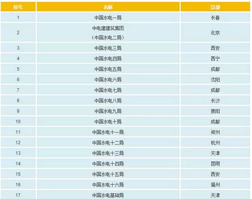 2)中水顧問(HYDROCHINA),中國水電工程顧問集團(tuán)有限公司,前身為水利水電規(guī)劃設(shè)計總局(院),主要分為中國水電顧問集團(tuán)國際工程有限公司和中國水電顧問集團(tuán)投資有限公司,2002年12月改組為中國水利水電建設(shè)集團(tuán)公司,2011年成為中國電建全資子公司?偛勘本。