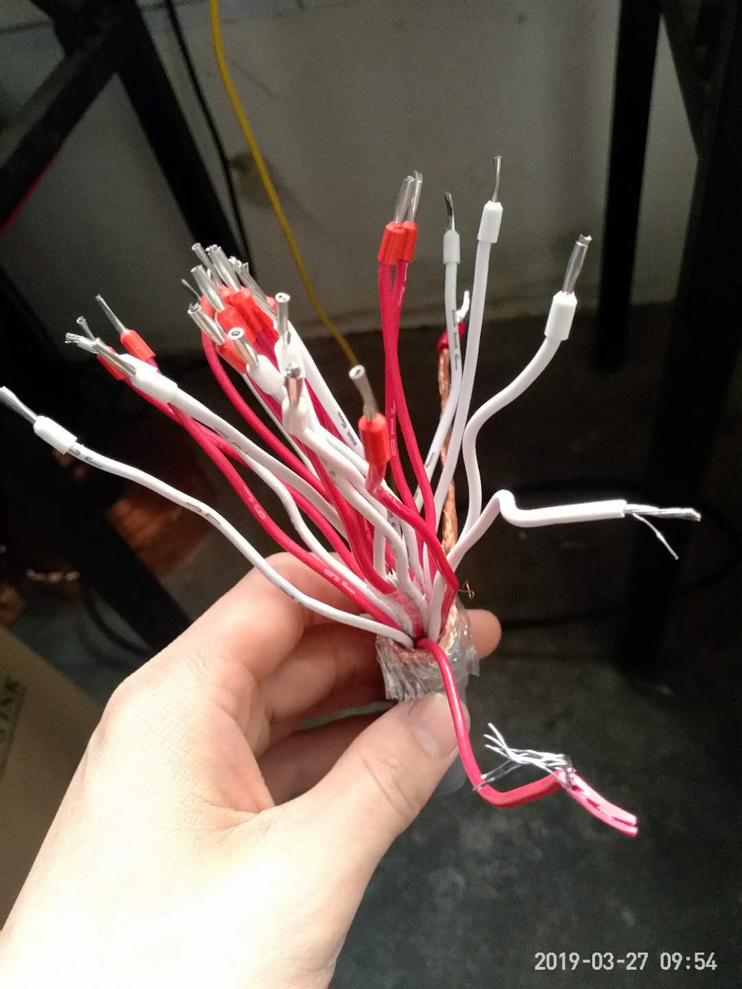 第二種可能是熱電偶補(bǔ)償導(dǎo)線,因為據(jù)你說導(dǎo)體不是銅,補(bǔ)償導(dǎo)線都是些合金導(dǎo)體,另外每個線芯端部都有段子壓接,像是插熱電偶的。