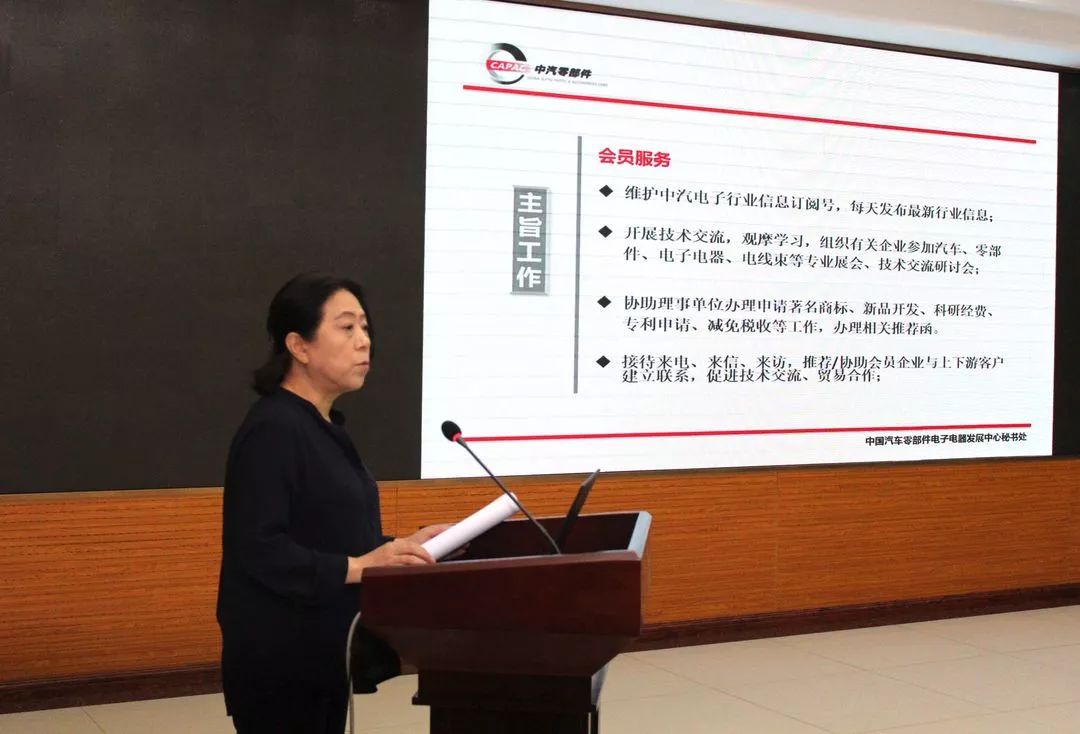 中國汽車零部件電子電器發(fā)展中心副理事長、營口阿部配線有限公司總經(jīng)理肖陽主持會議