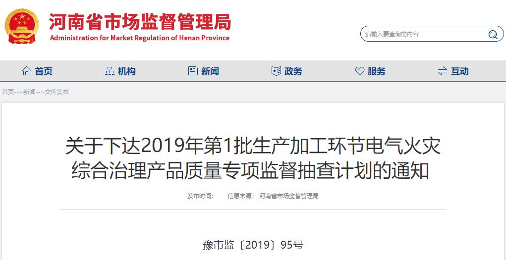 4月2日,為進(jìn)一步加強(qiáng)全省電氣火災(zāi)防范和生產(chǎn)加工環(huán)節(jié)電氣產(chǎn)品質(zhì)量安全監(jiān)管,河南省市場(chǎng)監(jiān)督管理局下達(dá)通知,決定即日起在全省開展2019年第1批生產(chǎn)加工環(huán)節(jié)電氣火災(zāi)綜合治理產(chǎn)品質(zhì)量專項(xiàng)監(jiān)督抽查,涉及10大類484批次產(chǎn)品。其中包括:阻燃/耐火電線電纜100批次、電線電纜用聚氯乙烯塑料16批次、控制電纜50批次。