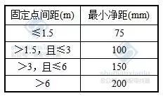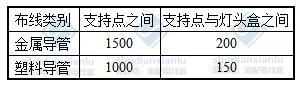 (1)支持點(diǎn)之間及支持點(diǎn)與燈頭盒之間的最大間距,應(yīng)符合下表 的規(guī)定: