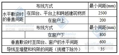 5、 屋外布線的導(dǎo)線至建筑物的最小間距,應(yīng)符合下表的規(guī)定。