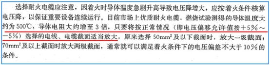 ③由于火災(zāi)導(dǎo)致的溫度升高會(huì)增加礦物絕緣電纜的電阻,加大了電壓損失,還應(yīng)適當(dāng)加大電纜截面。
