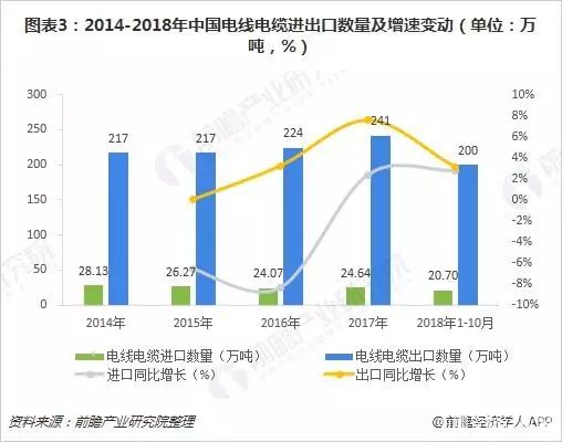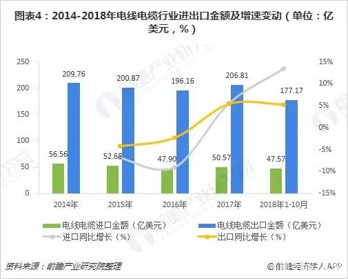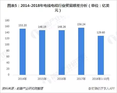 2018年至10月,電線電纜的貿(mào)易順差達(dá)到129.6億美元。我國(guó)制造業(yè)在經(jīng)歷了調(diào)結(jié)構(gòu)、去產(chǎn)能等的促進(jìn),電線電纜行業(yè)得到了較為規(guī)范的發(fā)展。