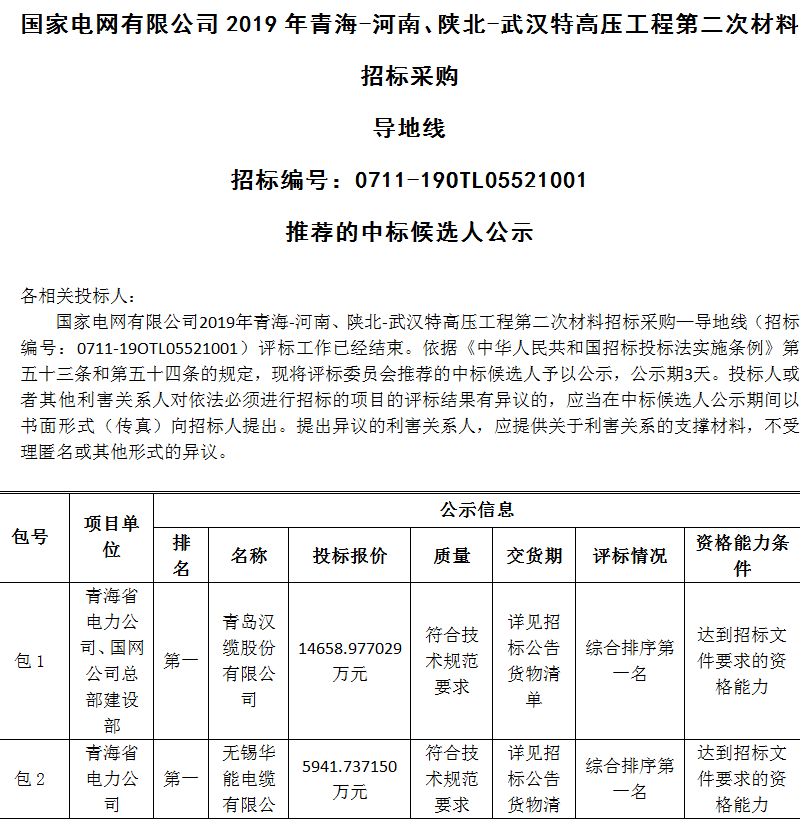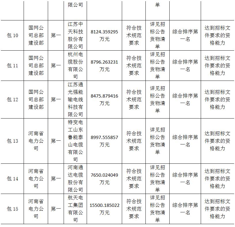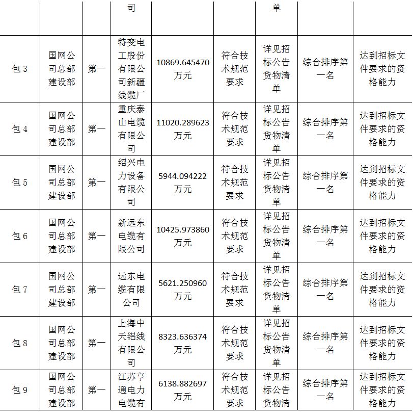除去江蘇通光強(qiáng)能輸電線、河南通達(dá)電纜、常州特發(fā)華銀、新余新鋼、藤倉(cāng)亨通光電均中1包以外,其余的線纜企業(yè),如:青島漢纜、無錫華能、特變電工新疆、特變電工山東、重慶泰山、紹興電力、新遠(yuǎn)東、遠(yuǎn)東、上海中天、亨通電力、江蘇中天、杭州電纜、航天電工,這13家大型纜企,均中2包。