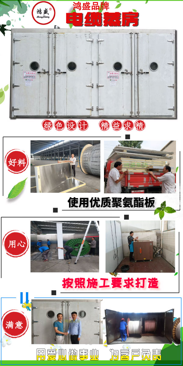 山東鴻盛廚業(yè)集團專業(yè)生產(chǎn)承壓硅烷交聯(lián)電纜蒸房、全自動控制電纜蒸房、控溫定時自動報警高壓蒸房、無人看守安全保障電纜蒸房。全自動電纜蒸房主要用于通入高壓水蒸汽,使中、低壓電纜在高溫蒸汽的作用下實現(xiàn)交聯(lián)。配備高壓蒸汽機,蒸汽壓力1-7kg可隨意調(diào)控,溫度170°。全自動電纜蒸房配備內(nèi)循環(huán)風機及排風風機,房內(nèi)溫度上下均衡,到達一定高溫自動排出,全自動系統(tǒng)控制。是電纜制造企業(yè)新型得心應手設備。