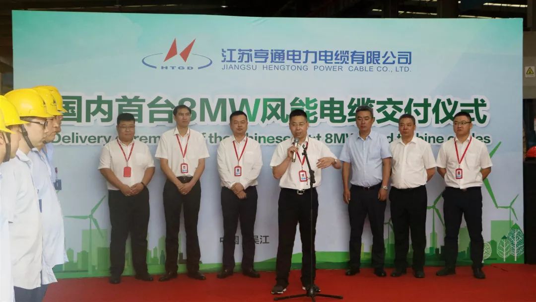 這是首次在國內(nèi)實現(xiàn)風電行業(yè)大功率8MW風能電纜及線束整體解決方案的交付使用,是中國線纜、風電兩個行業(yè)領(lǐng)先者的強強聯(lián)合、共同研發(fā)的結(jié)果,實現(xiàn)在風能電纜整體解決方案領(lǐng)域國際領(lǐng)先、國內(nèi)首臺的壯舉。亨通力纜總經(jīng)理王新國,風能線纜整體解決方案研發(fā)團隊、生產(chǎn)團隊相關(guān)人員及客戶代表出席了交付儀式。