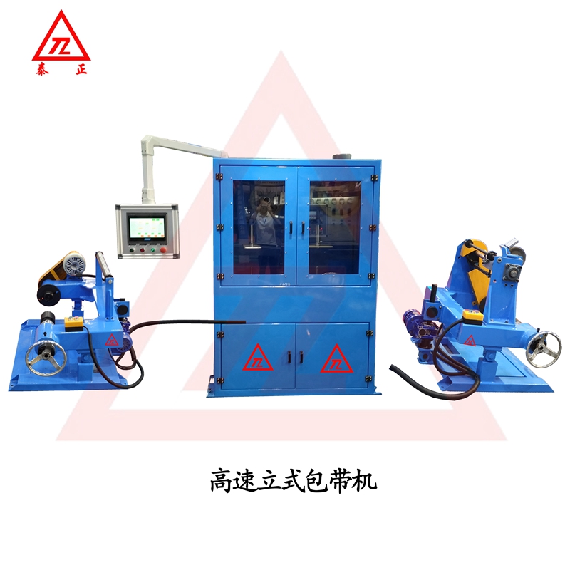 雙層塔盤式包帶機將包帶(云母帶、棉紙帶、鋁箔、聚酯薄膜等)通過轉(zhuǎn)盤旋轉(zhuǎn),繞包在芯線上,具有兩個、三個繞包頭。主要用于電線、力纜、控纜、光纜等的絕緣芯線繞包。