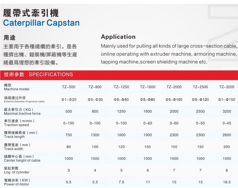 履帶式牽引機(jī)用途:主要用于各種線纜的牽引。是各種擠出機(jī),鎧裝機(jī),屏蔽機(jī)等生產(chǎn)線zui為理想的牽引設(shè)備。