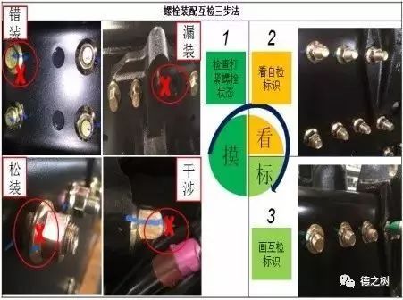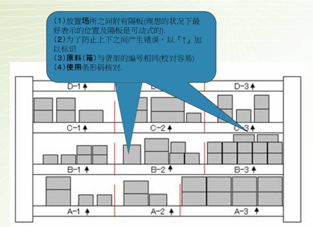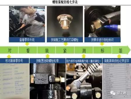 定點(diǎn)(定置) :規(guī)定現(xiàn)場(chǎng)所有物品放置到合適的位置。 定容(定物):對(duì)現(xiàn)場(chǎng)物品放置到固定容器、區(qū)域內(nèi)等,并進(jìn)行標(biāo)識(shí); 定量:核定區(qū)域堆放物品的數(shù)量。 連接起來就是什么樣的物品多少數(shù)量放在什么位置,這就是三定的定義。它是“5S”工作中整頓工作的工作原則,也是堅(jiān)持整頓工作的主要工作內(nèi)容。 每個(gè)物品都有一個(gè)放置的地方,每件物品都放在它應(yīng)該放置的地方,每件物品的放置地方都要有明確的標(biāo)識(shí)”。將需要的物品合理放置,加以標(biāo)識(shí),以便于任何人取放! 舉例:某日,A君得到B君的指示:從C-2的地方搬來1箱原料,A君可能會(huì)犯下什么錯(cuò)誤?又,您認(rèn)為應(yīng)該如何改善? 基本原則 1. 位置原則:物品的放置場(chǎng)所100%設(shè)定,易放、易找、易管理。 2. 數(shù)量原則:要定出最高量和最低量,以滿足基本要求的少量化原則。 3. 標(biāo)識(shí)原則:一對(duì)一標(biāo)識(shí),標(biāo)識(shí)方法全公司要統(tǒng)一。 定置管理圖是現(xiàn)場(chǎng)定置管理工作的重要組成部分。 定置圖設(shè)計(jì)的范圍包括:室外區(qū)域定置圖,各作業(yè)區(qū)定置圖,庫區(qū)、備件庫、庫房、辦公室等定置圖和特殊要求定置圖(如柜、柜內(nèi)、工作臺(tái)面、工具箱內(nèi),以及對(duì)安全、質(zhì)量有特殊要求的物品、物件數(shù)量定置圖)。 它是在對(duì)現(xiàn)場(chǎng)進(jìn)行診斷分析的基礎(chǔ)上,確定了合理的人、物、場(chǎng)所關(guān)系之后制定的管理圖,是日常整理、整頓工作的依據(jù),車間、班組必須都有定置圖,其具體內(nèi)容及要求如下: 車間定置管理圖:包括班組區(qū)域位置、通道、物流路線、運(yùn)輸鏈、在制品周轉(zhuǎn)地,供水點(diǎn)、加油點(diǎn)、鐵屑和垃圾存放點(diǎn)等。 圖片源自網(wǎng)絡(luò),僅供參考 班組定置管理圖(含庫房):包括設(shè)備、工藝流程、物流路線、操作工位、工位器具、工具箱、工裝架、輥道、運(yùn)輸鏈、廢品箱、鐵屑箱、在制品固定存放地、信息治理點(diǎn)、工作角、庫房零件(物品、物資)擺放定位等。 圖片源自網(wǎng)絡(luò),僅供參考 定置圖的設(shè)計(jì)與繪制: 定置圖比例:車間為1: 100-500;班組(含庫房)為1:100-300。 現(xiàn)場(chǎng)中的所有物品均應(yīng)繪制在定置圖上; 定置圖繪制以簡明、扼要、完整為原則,物形為接近實(shí)物,區(qū)域劃分清晰明確; 定置圖應(yīng)按要求繪制,但隨著定置關(guān)系的變化而進(jìn)行修改,保持圖與現(xiàn)實(shí)物相符 定置實(shí)施必須做到:有圖必有物,有物必有區(qū),有區(qū)必掛牌,有牌必分類;按圖定置,按類存放,賬(圖)物一致。 生產(chǎn)現(xiàn)場(chǎng)內(nèi),凡定置圖中未注名的設(shè)施和物品應(yīng)予以清除;做到圖物相符。 定置率: 定置率是反映是否按定置圖進(jìn)行整理、整頓,現(xiàn)場(chǎng)狀態(tài)達(dá)到標(biāo)準(zhǔn)程度的定量指標(biāo),其計(jì)算方法如下: 定置率=(按定置圖規(guī)定擺放物品單元數(shù)-未按規(guī)定擺放物品單元數(shù))/按定置圖規(guī)定擺放物品單元數(shù)×100% 三檢知識(shí) “三檢”是指“自檢、互檢、專檢”,也就是實(shí)行裝調(diào)工自檢、裝配工之間互檢和專職檢驗(yàn)人員專檢相結(jié)合的一種檢驗(yàn)制度。 自檢:裝配工在裝配過程中嚴(yán)格按照裝配作業(yè)指導(dǎo)書要求規(guī)范操作,完工后按照工藝要求對(duì)裝配狀態(tài)進(jìn)行自主檢查,并按照要求填寫相應(yīng)記錄。 互檢:后序裝配工對(duì)同工位或前面工位裝配工裝配內(nèi)容或檢查項(xiàng)的二次檢查確認(rèn)。 專檢:檢驗(yàn)員按照檢驗(yàn)作業(yè)指導(dǎo)書對(duì)產(chǎn)品狀態(tài)進(jìn)行專業(yè)的檢查和測(cè)量,并填寫相應(yīng)記錄。 1. 自互檢作業(yè)內(nèi)容是唯一確定的 例: A員工裝配門鎖,互檢門限位 B員工裝配鎖住,互檢逆變電源 C員工裝配逆變電源,互檢門鎖、鎖住 D員工裝配雨刮上線,互檢雨刮分裝 E員工裝配直通,互檢雨刮上線 F員工裝配工具箱蓋板,互檢直通 2. 自互檢人員是唯一確定的(自互檢人員是相鄰工序裝配工,并封閉在班組內(nèi)部) 3. 自/互檢作業(yè)步驟、標(biāo)記方法是唯一確定的 自檢七步法: 互檢三步法: 1. “我講你聽,我做你看;你講我聽,你做我看” 針對(duì)需要培訓(xùn)的員工,首先一對(duì)一講解三檢步驟及標(biāo)識(shí)標(biāo)記方法,接著按照三檢步驟及標(biāo)記方法進(jìn)行示范,然后聽裝配工講解自己對(duì)三檢步驟及標(biāo)識(shí)標(biāo)記方法的認(rèn)識(shí)理解,再看裝配工按照三檢步驟及標(biāo)記方法進(jìn)行作業(yè)的情況,最后統(tǒng)一認(rèn)識(shí),規(guī)范標(biāo)準(zhǔn)。 2. 檢驗(yàn)員在交接班前后對(duì)自己所管轄的區(qū)域進(jìn)行全覆蓋三檢檢查,保證交接班期間的裝配質(zhì)量狀態(tài)。 3. 對(duì)于新進(jìn)入崗位的員工,以師傅帶徒弟方式落實(shí)三檢工作,徒弟裝配完成后,由師傅進(jìn)行檢查,確認(rèn)合格后標(biāo)記標(biāo)識(shí)。