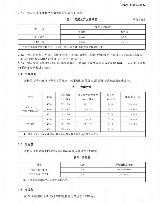 ①增加了TU3、TUP0.003牌號(hào)及對(duì)應(yīng)的代號(hào)C10200、C10300;