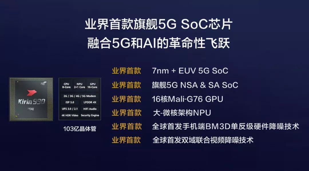 持續(xù)創(chuàng)新突破,重構(gòu)芯片想象。麒麟990 5G性能全面領(lǐng)先,用技術(shù)的發(fā)展迭代重新定義了智能手機(jī)芯片的未來。麒麟990 5G采用業(yè)界領(lǐng)先的7nm+ EUV工藝制程,首次將5G Modem集成到SoC芯片上,板級面積相比業(yè)界其他方案小36%。
