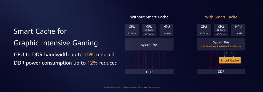 手機(jī)工作時,CPU決定著數(shù)據(jù)處理能力,而GPU則關(guān)系著芯片對圖像視頻處理能力。麒麟990 5G搭載了16核Mali-G76 GPU,與業(yè)界主流旗艦芯片相比,圖形處理性能高6%,能效優(yōu)20%。針對游戲場景,麒麟990 5G提供高性能、高能效、高畫質(zhì)游戲解決方案,實(shí)現(xiàn)業(yè)界頂級游戲體驗(yàn)。同時,全新系統(tǒng)級Smart Cache分流,支持智能分配DDR數(shù)據(jù),在重載游戲等大帶寬場景下帶寬較上一代最高可節(jié)省15%,功耗可降低12%。,進(jìn)一步提高GPU能耗。