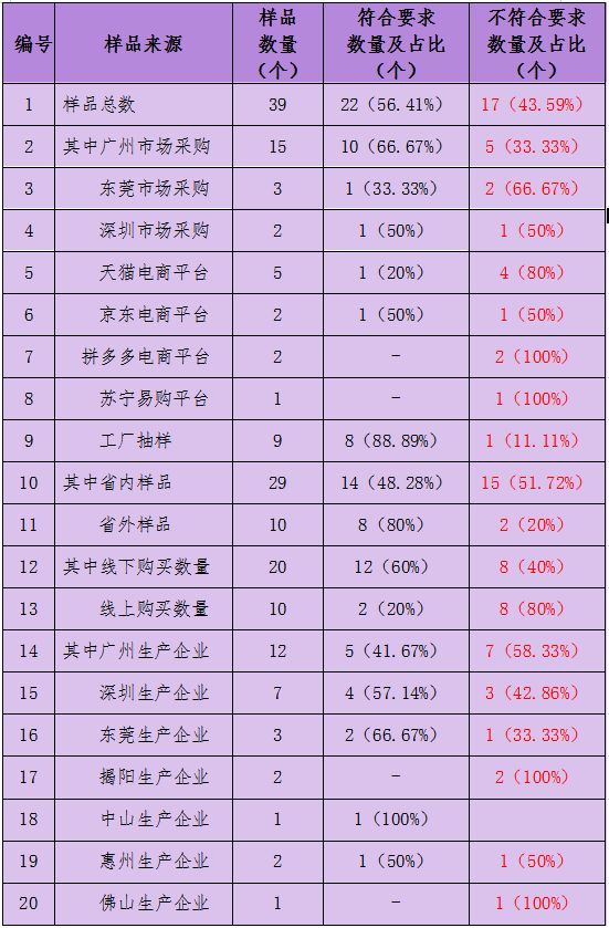 此次網(wǎng)線自檢專項(xiàng)行動(dòng)共計(jì)購買及抽取樣品39個(gè),省內(nèi)29個(gè),省外10個(gè),委托中國信通院泰爾實(shí)驗(yàn)室依據(jù)YD/T 1019-2013、IEC 61156-5:2012(等同國家標(biāo)準(zhǔn)GB/T 18015.5)標(biāo)準(zhǔn)進(jìn)行檢測(cè),質(zhì)量情況分析如下: