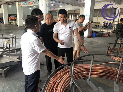 隨后華潤置業(yè)一行先后參觀了我司的產(chǎn)品展廳、企業(yè)榮譽墻、檢測中心并深入基層,參觀了礦物電纜生產(chǎn)車間,華潤置業(yè)一行認真了解了中亞電纜的生產(chǎn)流程和工序工藝,驚嘆可大截面大長度生產(chǎn)BTTZ礦物電纜的先進生產(chǎn)設備,對我司第三代礦物絕緣電纜自動化生產(chǎn)工藝給予了高度贊揚,對公司近年來在產(chǎn)品生產(chǎn)規(guī)范、質(zhì)量控制上取得的成績和強勁發(fā)展態(tài)勢予以充分肯定。