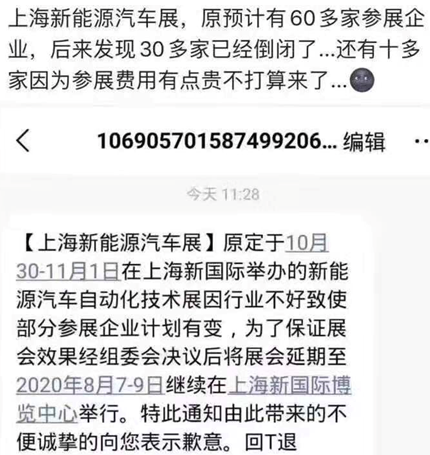 此外,網(wǎng)上有消息稱,原預計有60多家參展企業(yè),后來發(fā)現(xiàn)30多家已經(jīng)倒閉了,還有十多家因為參展費用有點貴不打算來了”,所以被迫跳票。