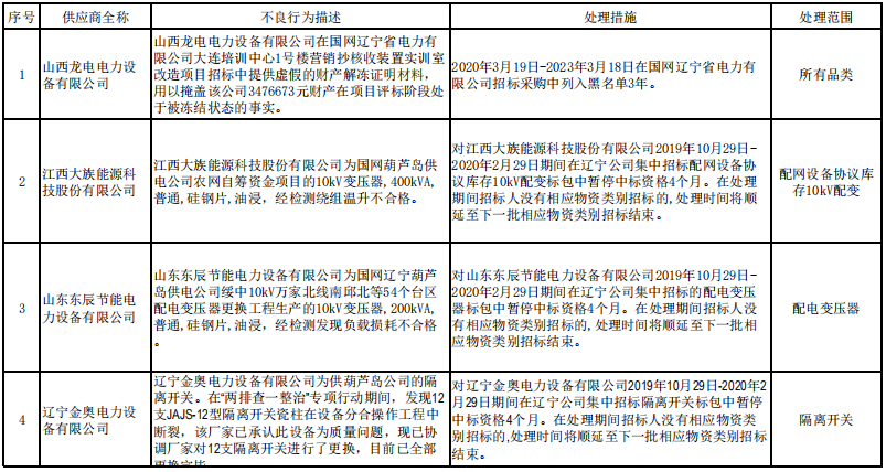 十二、國網(wǎng)遼寧省電力有限公司關于供應商不良行為處理情況的通報(2020年3月)