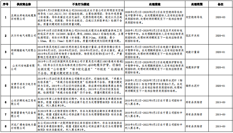 二、國網(wǎng)寧夏電力有限公司關于供應商不良行為處理情況的通報(2020年03月)