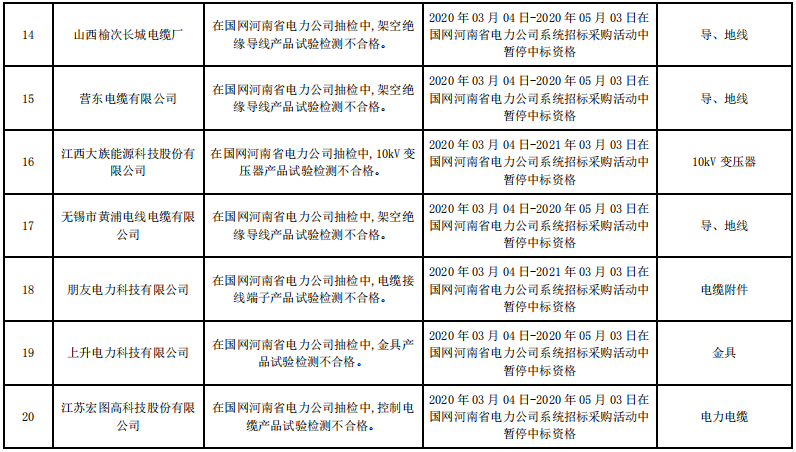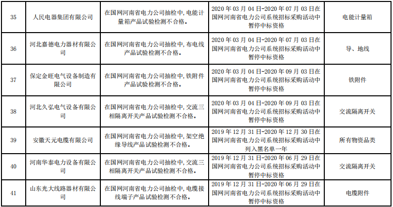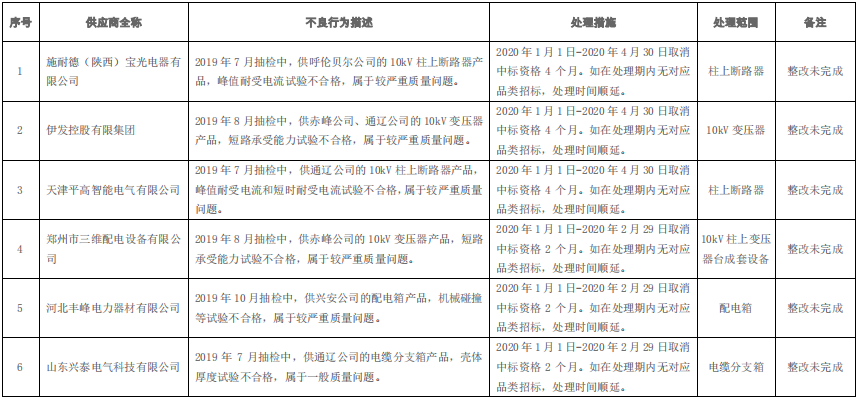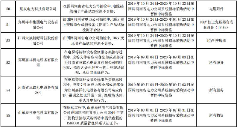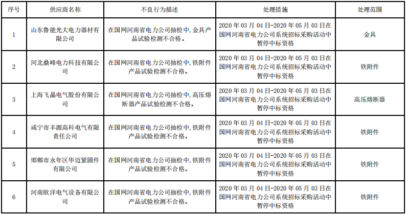 五、國網(wǎng)河南省電力公司2020年第一批供應商不良行為處置通報