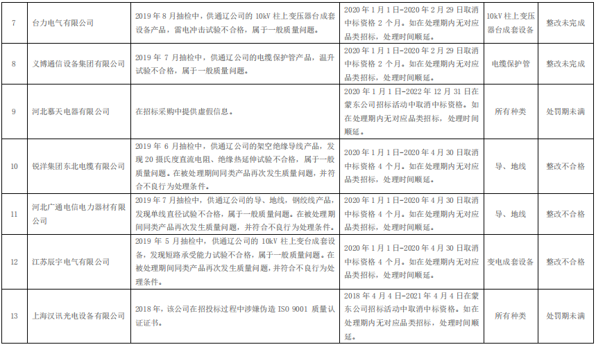 三、國網(wǎng)蒙東電力公司關于供應商不良行為處理情況的通報(2020年3月)