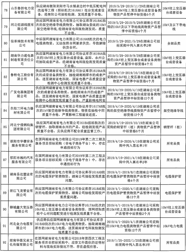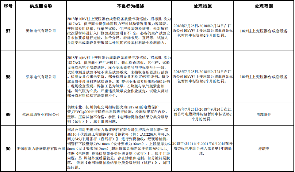 四、國網(wǎng)湖南省電力有限公司關于供應商不良行為處理情況的通報(2020年3月)