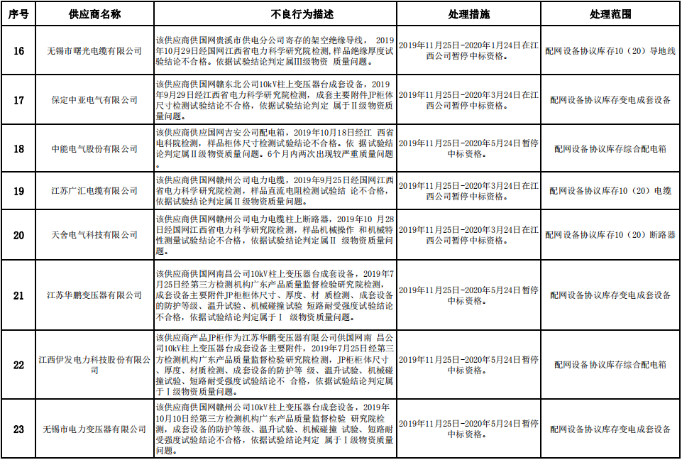七、國網(wǎng)江西省電力有限公司關于供應商不良行為處理情況的通報(2020年3月)