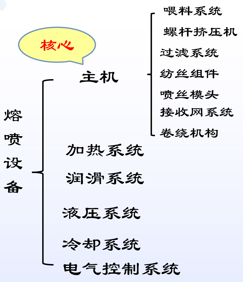 熔噴法中:高速熱空氣噴吹,受到極度拉伸,形成超細(xì)短纖維,以極高速度飛向成網(wǎng)簾或凝網(wǎng)滾筒形成纖網(wǎng)