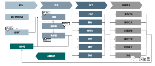 首先我們來看一下銅產(chǎn)業(yè)鏈劃分:主要分為采選、冶煉、加工和終端需求。