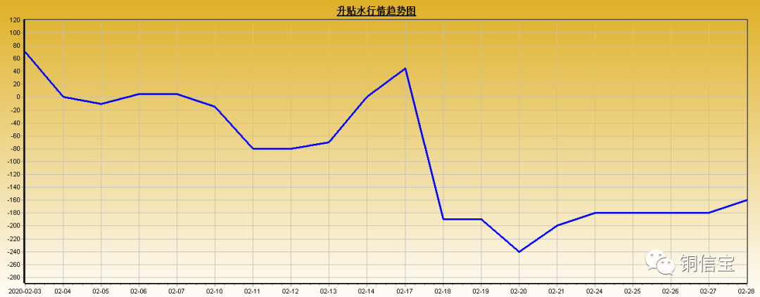 2月銅現(xiàn)貨價格、升貼水價格走勢圖如下。
