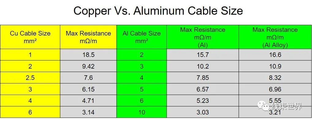 除了HC Stak 35連接器,引人注目的還有與之相連的兩根橙色大線。而隱藏在這耐溫超過180℃的塑膠表皮里面的,是被銅網(wǎng)和鋁箔屏蔽著的鋁導(dǎo)線。沒錯(cuò),就是鋁導(dǎo)線!HC Stak家族的高壓連接器既可以匹配銅導(dǎo)線,還可以匹配鋁導(dǎo)線,而相同線徑的導(dǎo)線所配接插件均可直接共用。提到鋁導(dǎo)線,大家并不陌生,因?yàn)榻陙礓X導(dǎo)線在傳統(tǒng)汽車上已經(jīng)得到廣泛應(yīng)用,但把鋁導(dǎo)線成功應(yīng)用在電動(dòng)汽車高壓系統(tǒng)的,卻是寥若晨星。這里要提到兩個(gè)基本常識(shí):鋁的密度是銅的三分之一(2.7kg/m3 Vs 8.9 kg/m3),鋁導(dǎo)線代替銅導(dǎo)線可以大大減輕重量;鋁材比銅材便宜超過一半以上,鋁導(dǎo)線代替銅導(dǎo)線可以大大節(jié)約成本。面對(duì)這眾所周知的優(yōu)勢(shì)和顯而易見的利益,為什么絕大多數(shù)電動(dòng)車設(shè)計(jì)者都只是側(cè)目而視但卻躊躇不前呢?老邁經(jīng)過進(jìn)一步調(diào)查發(fā)現(xiàn),鋁導(dǎo)線取代銅導(dǎo)線應(yīng)用于電動(dòng)汽車高壓系統(tǒng),總結(jié)起來尚有如下六大疑團(tuán)在人們心中揮之不去:首先是最核心的電氣性能,鋁的電導(dǎo)率只有銅的60%,直接影響到導(dǎo)線的載流能力。這里的電導(dǎo)率是兩種金屬的電氣特性,具體到我們實(shí)際應(yīng)用的導(dǎo)線,大家都知道,橫截面積越大載流能力就越強(qiáng)。因此通過增加線徑即可提升鋁導(dǎo)線的載流能力,比如要求通過同樣大小的持續(xù)電流,50平方的銅線,可以使用70平方的鋁線等量替換,即便如此,重量依然可以減輕45%左右,成本可以節(jié)約一半以上。美國(guó)USCAR推薦了一份兩種導(dǎo)線等量替換的對(duì)照表,在此僅截取部分作為參考。