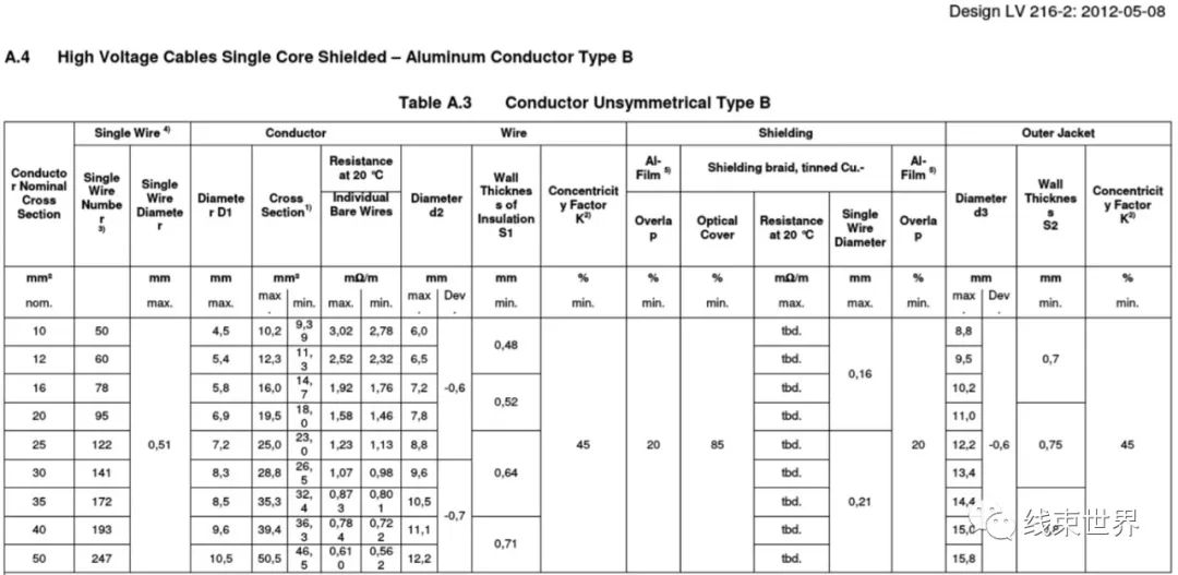 第二是鋁的抗拉強(qiáng)度只有銅的64%,直接影響到實(shí)際應(yīng)用中的機(jī)械性能。事實(shí)上,鋁的抗拉強(qiáng)度可以通過金屬熱處理工藝得到提升,在此基礎(chǔ)上還可以通過增加不同比例的鐵、硅、銅、鋅等成分來進(jìn)一步加強(qiáng),從而達(dá)到跟銅完全相同的抗拉強(qiáng)度。關(guān)于鋁導(dǎo)線(包括屏蔽和非屏蔽),行業(yè)標(biāo)準(zhǔn)機(jī)構(gòu)早已制定出完善的相關(guān)標(biāo)準(zhǔn),國(guó)際標(biāo)準(zhǔn)委員會(huì)發(fā)布的ISO6722-2和ISO19642-2,歐洲AK Group發(fā)布的LV112-2 和LV216-2等都是針對(duì)車用鋁導(dǎo)線的標(biāo)準(zhǔn)規(guī)范(參考下圖No.10部分標(biāo)準(zhǔn))。Aptiv、General Cable、Leoni、Coroplast、Sumitomo、LS、和G&G等業(yè)內(nèi)的線纜/線束供應(yīng)商已經(jīng)開發(fā)出了成熟量產(chǎn)的鋁導(dǎo)線產(chǎn)品,可以完全滿足電動(dòng)汽車對(duì)電氣性能、機(jī)械性能以及環(huán)境性能的要求。