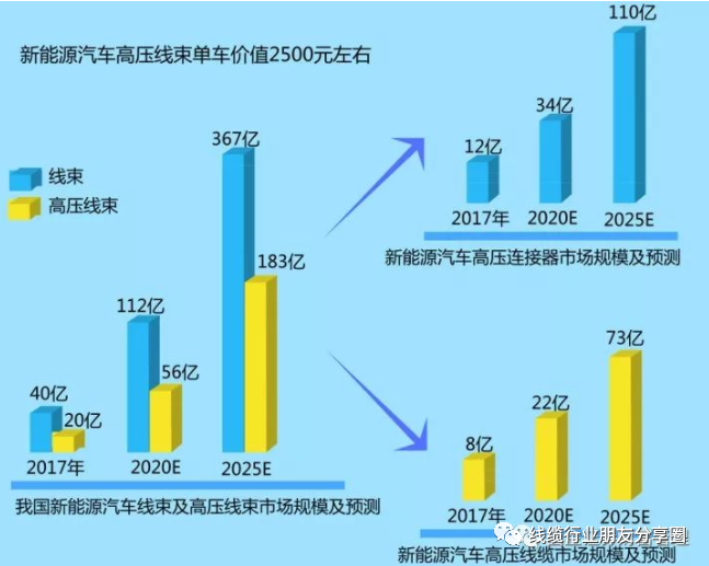 隨著國(guó)家對(duì)新能源汽車市場(chǎng)的高度重視,未來(lái)我國(guó)新能源車線束市場(chǎng)占比將有所提升,將進(jìn)一步增加對(duì)高質(zhì)量汽車線束的需求,從而促使國(guó)內(nèi)汽車線束市場(chǎng)的進(jìn)一步發(fā)展。汽車線束主要包含高壓線束和高壓連接器以及附屬固定與保護(hù)的配件等。