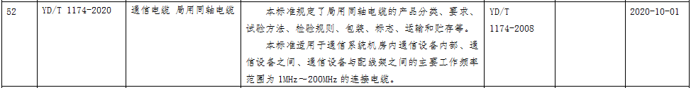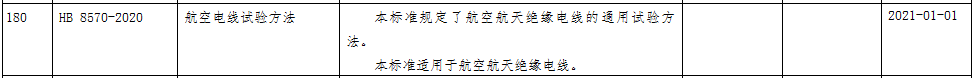 其中,通信行業(yè)涉及電纜新標(biāo)準(zhǔn)1項,實施日期為2020年10月1日,航空行業(yè)涉及線纜新標(biāo)準(zhǔn)2項,實施日期為2021年1月1日。