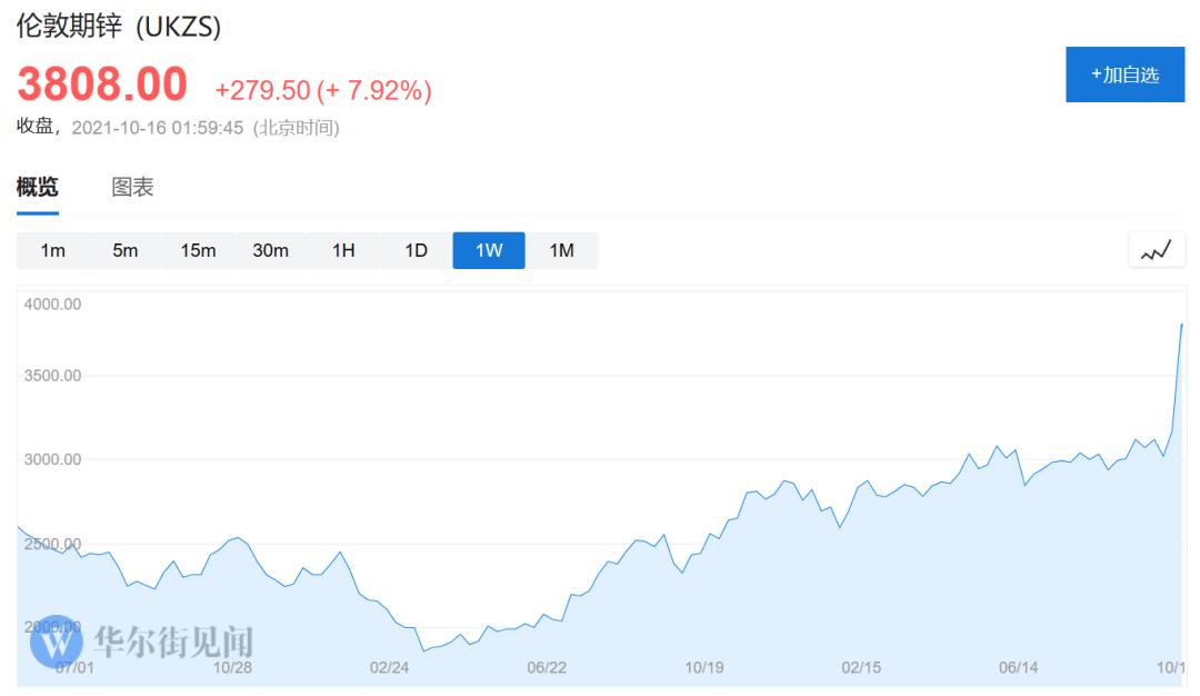 上周五夜盤(pán),滬鋅再度暴漲,開(kāi)盤(pán)直接高開(kāi)7%,并迅速?zèng)_上漲停板,最終收漲7.01%,報(bào)27517.47元/噸,連續(xù)斬獲了7連陽(yáng)。另外,國(guó)外倫敦LME期鋅亦連續(xù)暴漲,周五美股盤(pán)初一度大漲12%至3944美元/噸,刷新2007年5月以來(lái)最高,本周累計(jì)漲幅超20%,直接創(chuàng)出史上最大單周漲幅的紀(jì)錄。