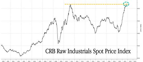 銅、鋁、鋅作為最重要的工業(yè)金屬,價(jià)格以突破性的速度飆升,正在給下游制造商帶來(lái)壓力。周三,CRB BLS美國(guó)原材料工業(yè)品現(xiàn)貨指數(shù)飆升至歷史新高,反映了皮革、牛油和金屬?gòu)U料等原材料價(jià)格也在飆升。