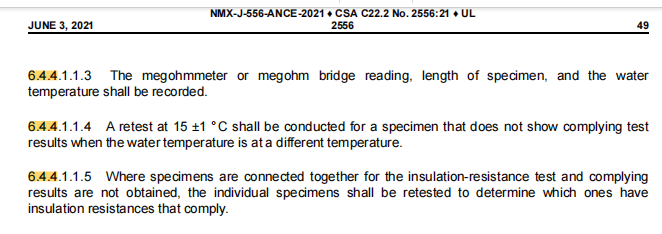 UL25566.4.4.1短期絕緣電阻-之長(zhǎng)度規(guī)定的要求是多長(zhǎng)? - 無圖版